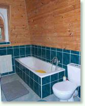 Na pierwszym piętrze są trzy sypialnie z podwójnymi łóżkami (jedna z nich to przechodni salon z wyjściem na balkon), oraz sypialnia czteroosobowa z dwoma podwójnymi łóżkami (z wyjściem na balkon), idealna dla dzieci. Znajduje się tu również wykafelkowana, przestronna łazienka z umywalką, WC i wanną. Na parterze znajduje się salon z TV oraz z kominkiem, kuchnia i jadalnia, oraz oddzielny gabinet, w którym istnieje możliwość spania na podwójnej rozkładanej sofie. Na parterze znajduje się również druga przestronna łazienka z umywalką, kabiną prysznicową i WC.