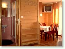 * pokoje wykończone w drewnie z łazienkami i tv