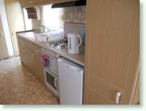 Wyposażenie: jadalnia, czajnik elektryczny, kuchenka, piekarnik, grill, lodówka z zamrażalnikiem, komplet sztućców i naczyń.